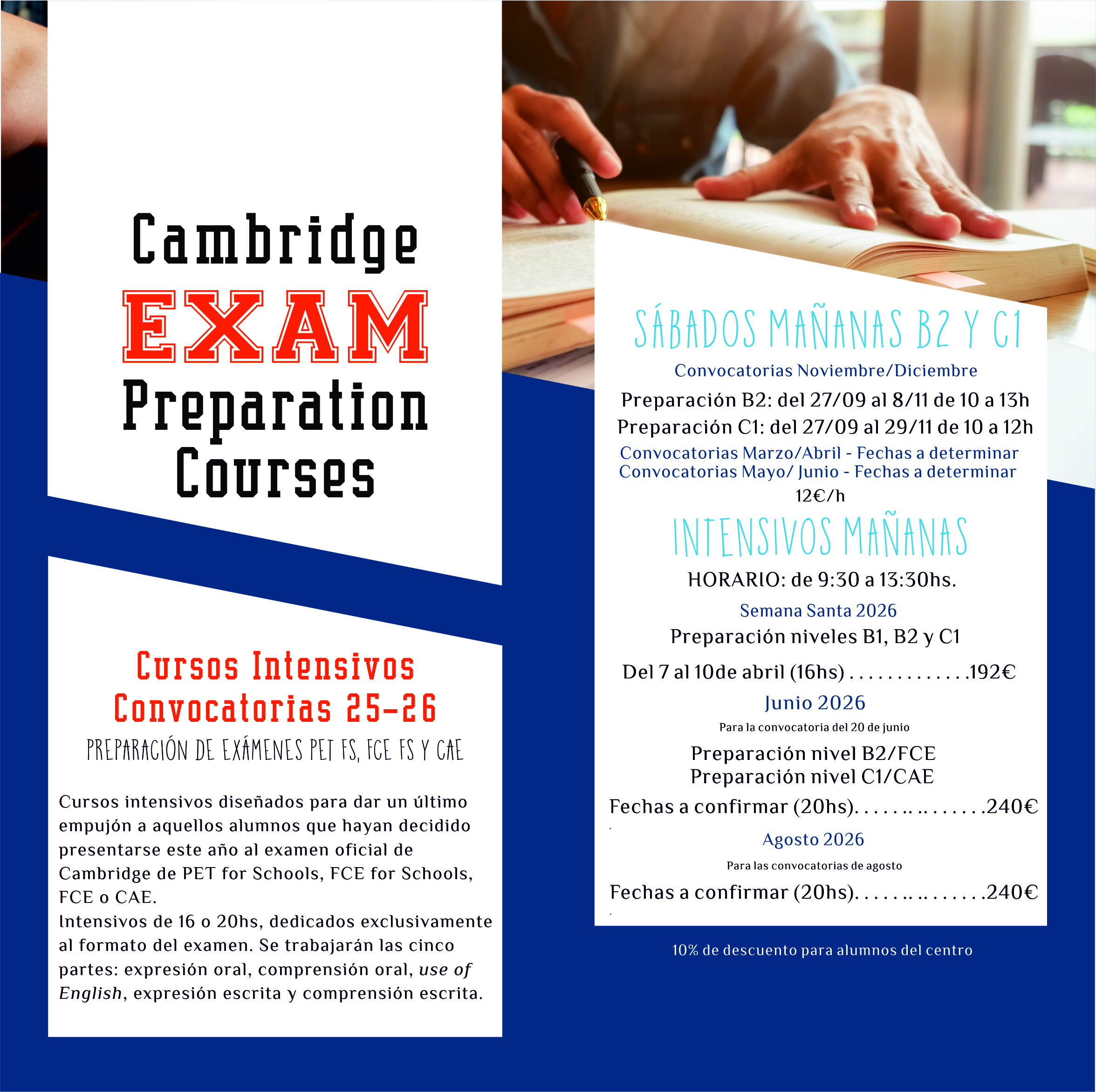 Pincha aquí para conocer las fechas de las convocatorias de Cambridge para este curso 25/26